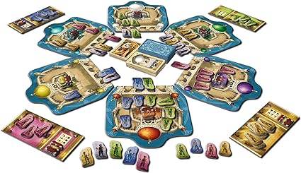 Dusk is slowly descendig upon the desert city... This is the time when the players send out their 12 thieves for their competition to steal the most treasures from the palaces. The maharadjahs think they can prevent the robbery with their guards. But the guards can be bribed and used by the players for their own purpose.