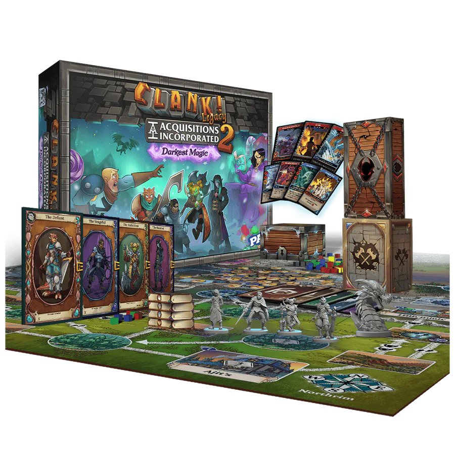 Hailed as one of the best legacy games of all time, the original Clank! Legacy took players on a whirlwind adventure that combined deck-building strategy, the beloved push-your-luck bag draw of Clank!, and an unforgettable over-the-top story. Recapture the magic with Clank! Legacy 2: Acquisitions Incorporated - Darkest Magic for the biggest, best, clankiest Clank! yet!
