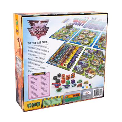 Each round in Dinosaur World, you draft a new résumé card to acquire new workers; spend workers to take public actions building your park and acquiring DNA; spend further workers to take private actions improving that park; then drive your jeep around experiencing the wonder and excitement of what you have built! Throughout the game you acquire victory points through a variety of means — and possibly a few visitor deaths as a natural consequence of overly enthusiastic dinosaur encounters. At the end of the game, you lose points if you accumulated too many deaths, then the player with the most points wins!