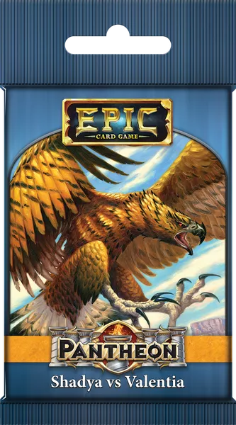 Epic Card Game: Pantheon is an expansion for the Epic Card Game that's packaged in six non-random booster packs (Furios vs Maligus, Helena vs Zaltessa, Angeline vs Scara, Gareth vs Lashnok, Shadya vs Valentia, and Riksis vs Tarken), with each booster pack containing twelve new game cards, 2 deity/token cards, and 1 double sided token card.