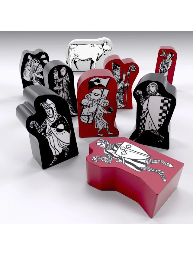 A set of 21 30-mm wooden meeples featuring Terry Gilliam's own artwork, for use with Monty Python's Cocurricular Mediaeval Reenactment Programme, its adjunct minigames, or anything else you can think of. Well, perhaps not anything, you heathens.