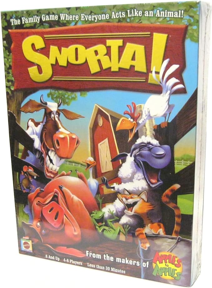SNORTA-The Family Game Where Everyone Acts Like an Animal!: The party game where everyone is an animal... or at least sounds like one! Get ready for laughter as your friends and family suddenly start sounding like they were born in a barn! In Snorta each player chooses the sound of a typical farm animal and the fun begins. As players quickly flip over cards, tongue-tied players stumble and stutter to blurt out the animal sounds of the other players. Before long your “barnyard” fills with bales of laughter. You will have a hoot with Snorta! 4-8 Players Appx 30 minutes Ages 8+