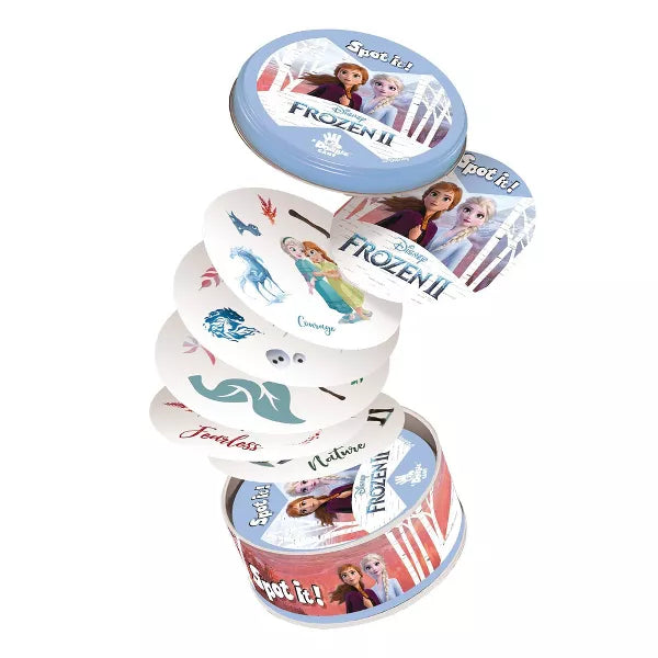Bring Elsa, Anna, Kristoff, Olaf and Sven to the tabletop in the all-new Spot It! Frozen 2. Players will test their observational skills and hone their reflexes in this game of lightning-fast choices featuring beloved characters and symbols from Frozen 2. Like classic Spot It!, an award-winning game for players of all ages, the game functions on a simple mechanic: thirty cards that each feature multiple images – but each card has only one of those images in common with every other card in the deck. Spot It! Frozen 2 offers five distinct game options that ensure players are always having fun in the land of Arendelle and beyond.
