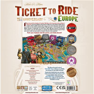 This deluxe and oversized version of Ticket to Ride® Europe celebrates years of thrilling train adventures for many families and friends.