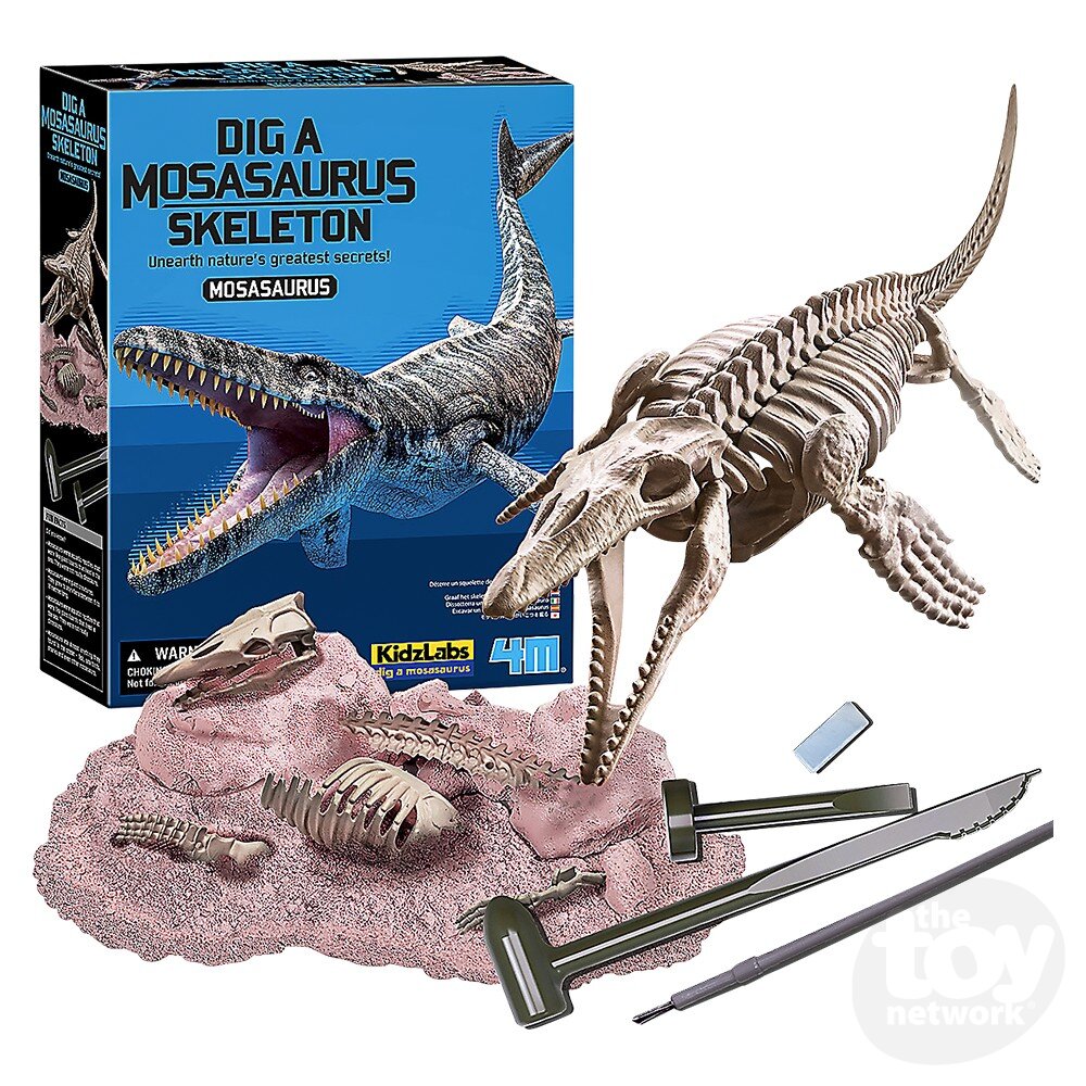 Unearth a Mosasaurus fossil with this KidzLabs - Dig a Mosasaurus Skeleton kit! Includes tools for digging and polishing. Easily assemble bones that click together.