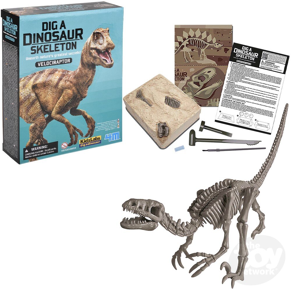Unearth a Velociraptor fossil from the rock with this KidzLabs - Dig A Dinosaur - Velociraptor set. Includes tools for digging and polishing. Easily assemble bones that click together. Each piece is in a color box. 6.6 x 8.5 x 2.3 inches.