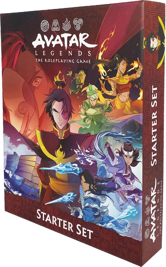 The Avatar Legends: The Roleplaying Game Starter Set features: 32-page booklet of condensed rules, 40-page introductory adventure booklet featuring The Pirates of Crimson Sails set in the era of Avatar Aang, and The Burning Fuse set in the era of Avatar Korra, 10 engraved dice featuring Tui and La, 21 combat action cards, 10 illustrated pre-generated character sheets, 6 rules reference sheets, A large full-color map of the Four Nations, A unique code to unlock a full digital version of the Avatar Legends RPG Starter Set, and a 50% discount code for the Avatar Legends NEXUS Edition Core Book on Demiplane. Experience the Avatarverse like never before! This boxed set includes everything you need to get started playing Avatar Legends: The Roleplaying Game, portraying your own characters on action-packed escapades through the Four Nations!
