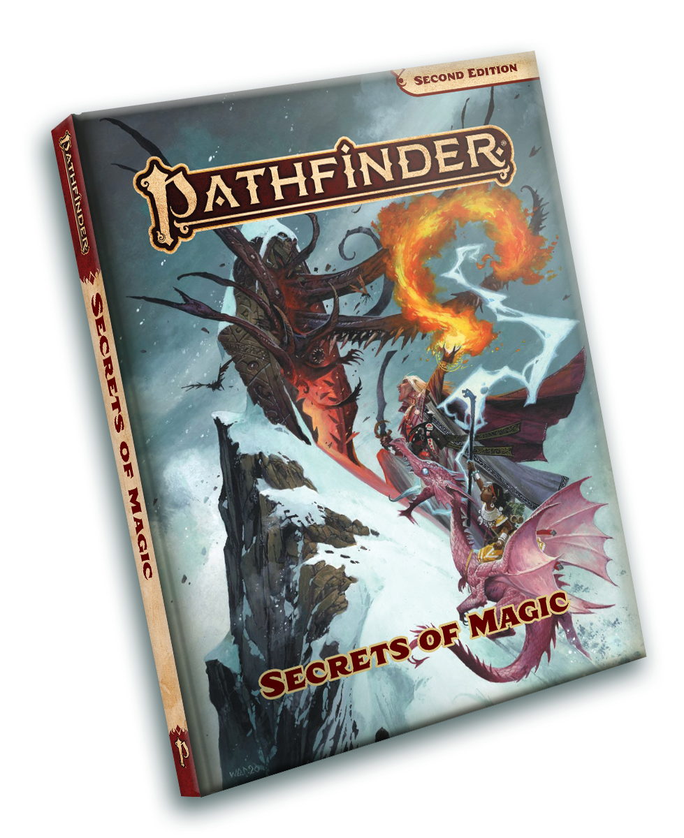 Discover the untold potential of magic! Secrets of Magic, the newest hardcover rulebook for the Pathfinder Roleplaying Game! Secrets of Magic brings the popular magus and summoner classes into Pathfinder Second Edition, unlocking heroes who combine magical might with martial prowess and offering command of a powerful magical companion creature. The lavishly illustrated, 256-page rulebook contains hundreds of new spells with potent offerings for all spellcasting character classes, magic items for any player character, and lore detailing the fundamental structure and theories of magic. A special section within the volume—the Book of Unlimited Magic—presents new methods of spellcasting, with elementalism, geomancy, shadow magic, rune magic, and even pervasive magic to give every place and creature in your game a magical spin!
