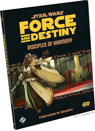 The rise of the Empire has caused the Jedi Order to fade even further into obscurity, but the galaxy of Star Wars™ is immense, with new secrets always waiting to be discovered. Not all regard the Jedi as myths or frauds; some seek to continue their traditions. Disciples of Harmony, a sourcebook for Consular characters in the Star Wars™: Force and Destiny™ roleplaying game, expands the options available to Consulars in the core rulebook and gives Game Masters new opportunities to position these arbiters of balance within their campaign.