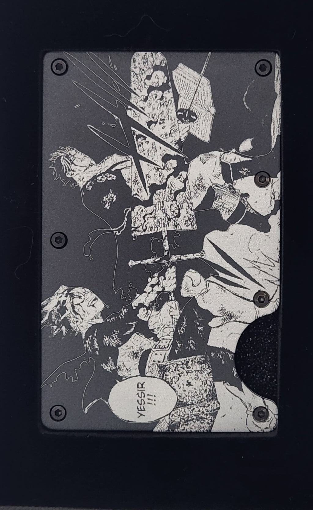 BBZ Custom Metal Wallets with custom designs. A slim wallet encourages you to streamline your essentials, leading to better organization of cards, cash, and other important items. The curved groove offers effortless access to every card, reducing clutter and enhancing convenience. Equipped with RFID-blocking aluminum plates, this wallet protects against identity theft and financial fraud, ensuring the security of your personal information. Made from top-tier materials, it promises durability and resistance to wear. The traditional money clip on the exterior allows you to securely hold multiple bills, adapting to various situations and lifestyles with ease.