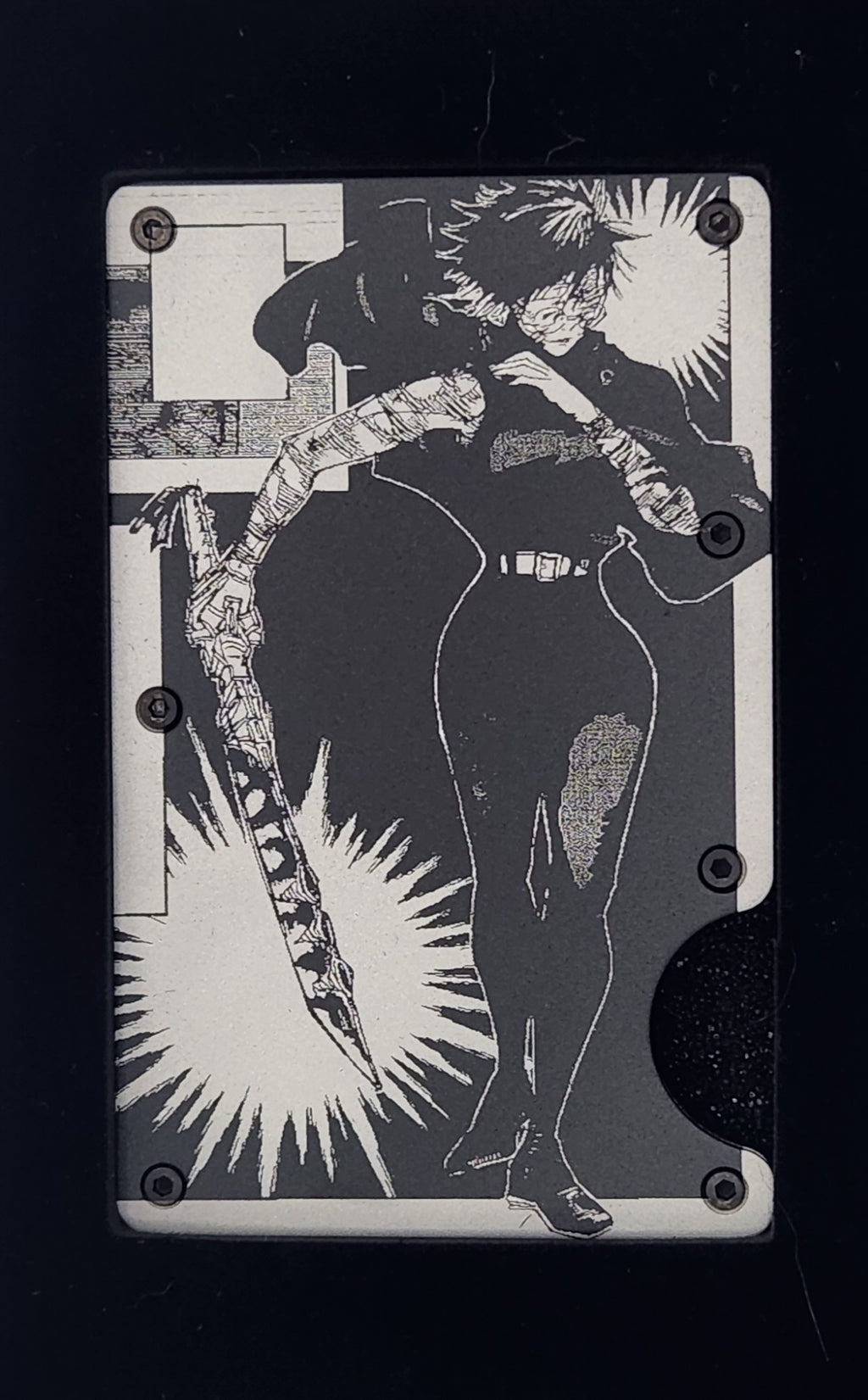 BBZ Custom Metal Wallets with custom designs. A slim wallet encourages you to streamline your essentials, leading to better organization of cards, cash, and other important items. The curved groove offers effortless access to every card, reducing clutter and enhancing convenience. Equipped with RFID-blocking aluminum plates, this wallet protects against identity theft and financial fraud, ensuring the security of your personal information. Made from top-tier materials, it promises durability and resistance to wear. The traditional money clip on the exterior allows you to securely hold multiple bills, adapting to various situations and lifestyles with ease.