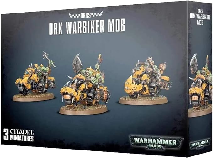 This Box Set: Inside this box set, you will find a squad of Warhammer 40,000 Orks Warbikers ready to join your army. Meticulously detailed and crafted to embody the speed and ferocity of the greenskin horde, the Warbikers are a fearsome sight to behold on the tabletop battlefield. With options for customization and posing, you can tailor your Warbikers to suit your tactical preferences and create a truly formidable unit to lead into battle.