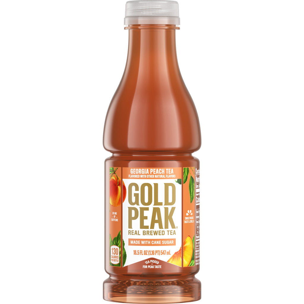 Real brewed Gold Peak Georgia Peach Sweet Tea is made with real cane sugar and finished with flavor from Georgia Peaches.
