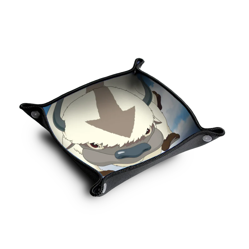 The Appa Dice Tray is a beautiful and useful accessory for Avatar Legends: The Roleplaying Game. Made of a full-color flexible rubber sheet with a fabric cover and buttons, it easily assembles into a beautiful rolling dice tray at your table. The dice tray features artwork of beloved sky bison Appa, as well as Avatar Aang and Avatar Korra!