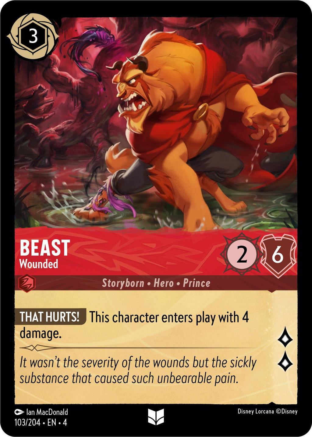 That Hurts! This character enters play with 4 damage.