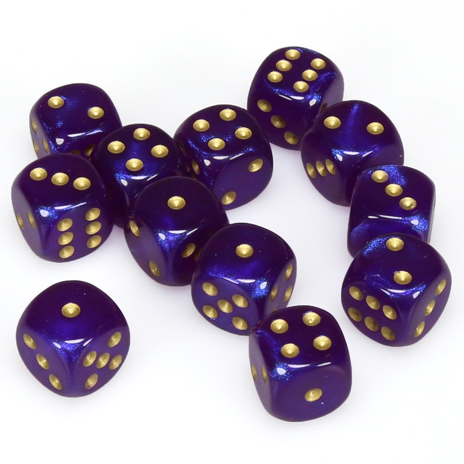 Chessex Borealis: 16MM D6 Royal Purple/Gold (12)