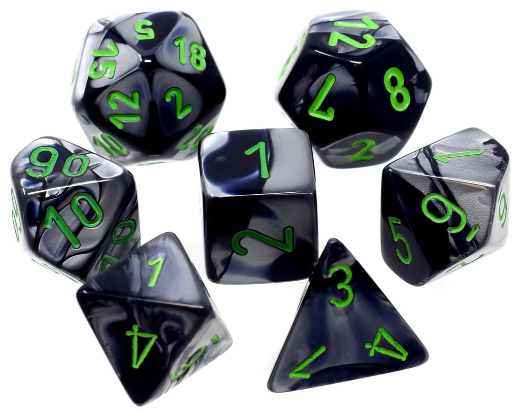 Chessex Gemini: Black-Grey/Green 7 Dice Set