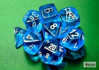 Chessex Lab Dice Translucent: Tropical Blue/White 7-Die set